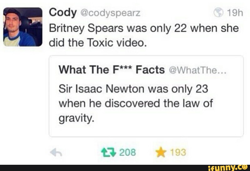 Britney Spears Was Only 22 When She Did The Toxic Video What The F Facts Whattheff Sir Isaac Newton Was Only 23 When He Discovered The Law Of Gravity Sir Issac Newton Wishes Twitter